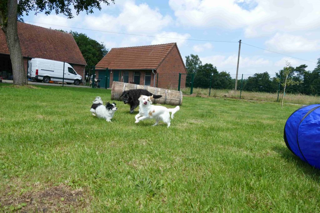 Ein weitläufiger Auslaufbereich mit diversen Spielmöglichkeiten steht den Hunden zur