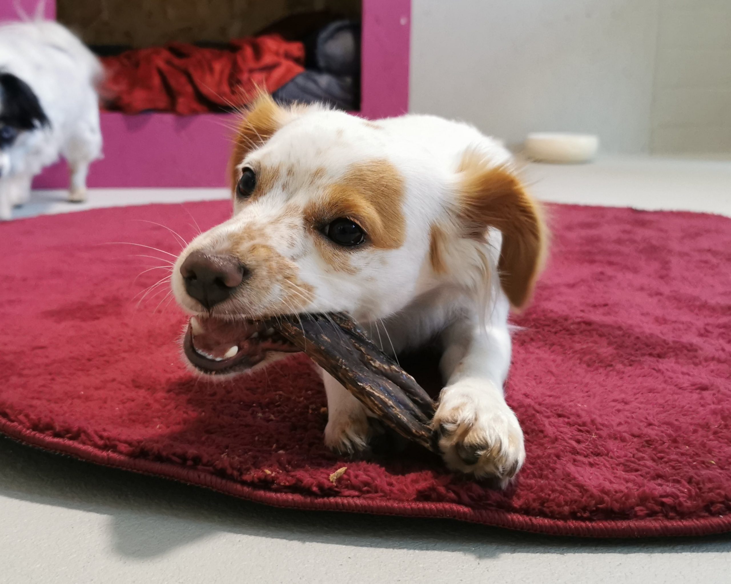 Wir bieten täglich natürliche Kausnacks an. Diese Snacks fördern das Kauverhalten und unterstützen die Zahngesundheit