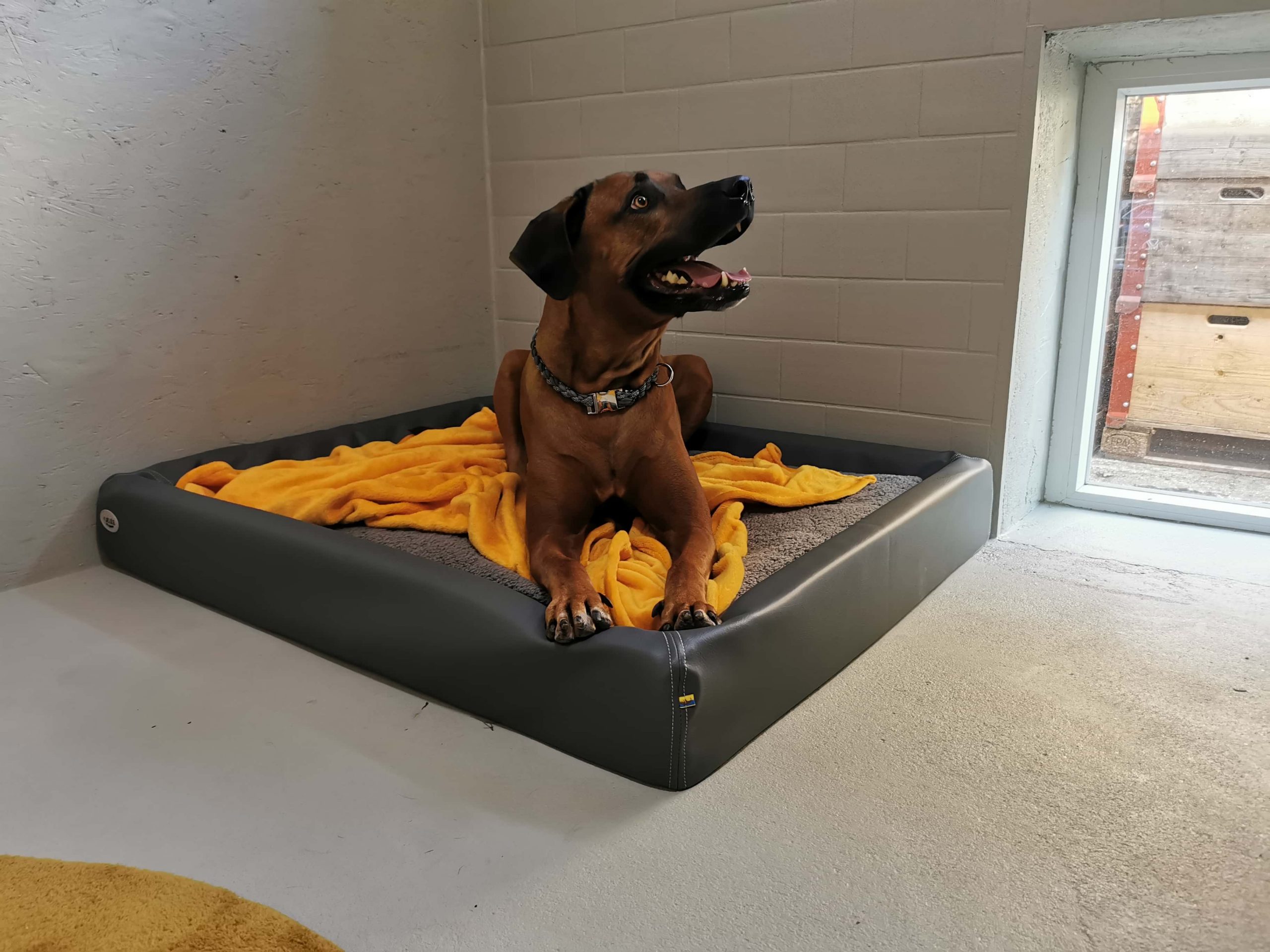 Alle Zimmer sind mit komfortablen Betten und Rückzugsmöglichkeiten ausgestattet, damit Ihr Hund sich entspannen und wohlfühlen kann.